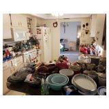Few of the items: Beautiful sofa and matching love seat, granite top coffee and end tables, decorative fire place, beautiful Broyhill china hutch, entry table, two queen bedroom sets, recliner sofa and love seat, TV's, office furniture, patio set, curio cabinet, lots of great decor, knickknacks, collectibles, great kitchenware items, antique original cradel in excellent condition, Drive Medical Tub Chair, books, Cd's and DVD's, Christmas decor, custom jewelry, lots of great garage items, few hand tools, clothes, handbags, and so much more.