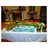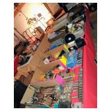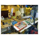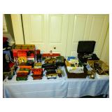 Trains by Lionel and Marx, Train Set by Echo, Train Tracks, Marx Train Crane, Train Station, Ives Water Tower, other train cars and parts, Sleds, Air Hockey Table, Large Wooden Toy Box with Hinged Lid, Vintage Doll High Chairs, Vintage board games, puzzles and toys, Buddy L Car Carrier, Vintage Doll Crib, and MUCH MUCH MORE!