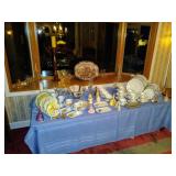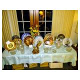 Antique Hanging Light, Buddy L Car Carrier, Lalique Glass Figure, Tiffany Crystal Bowl, Limoges Piece from 1897 marked LFC, Bells, Figurines, Small Statues, Christmas Decor, Records and 45s, Modern License Plates, Antique Cervantes Don Quixote Book, Collector Bells, A Beautiful Collection of Collectors Plates, War Ration Book, Masonic Coins, Masonic Books, Masonic Pins, Masonic cups, Masonic Clock, Antique Masonic Lodge Pictures early 1900s framed, Vintage Ammo Cans, Vintage Boat Propellers, Hanging Brass and Glass Lamp, and tons more....TOO MUCH TO LIST