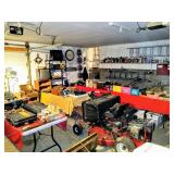Tools, 2 Cub Cadet Lawn Tractors, Extension Ladders, Werner 22' Folding Ladder, Master Mechanic Tool Chest, Bolen Lawn Mower, Troy Bilt Lawn Mower, Metal Trash Can, Shop Vac, Electrical Supplies, Lumber, Hardware, Wood Door, Metal File Cabinet with built in safe, Tractor Snow Plows, Cadillac Parts, Cadillac Hubcaps, Cadillac Grille, Steel Wheels, Hand Tools, Pro tech Miter Saw, Craftsman Wet Dry Vac, Generac 4000xl Generator, Chemicals and Cleaners, Battery Charger, Rolling Tool Cart, Chrysler Chrome Wheel with Tire, Floor Jack, Porter Cable Air Compressor, Work Lights with Stand, Dolly's, Floor Planks, Electric Chainsaw, Electric Weed Wacker, Electric Edger, 2 Garden Trailers for Riding Mowers, Craftsman Wood Chipper, Cub Cadet Tow Behind Finish Mower, Plastic and Metal Shelving, Metal Storage Cabinet, Metal Industrial Barrister Style Bookcase, Manual Rotary Push Mower, Dolly, Leaf Blower, Vintage Snapper Riding Mower, Gas Cans, Tool Cart and SO MUCH MORE YOU WON'T WANT TO MISS THIS ONE