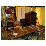 Antique Furniture, Freemasons Masonic Throne from a Masonic Hall, solid wood bench seat with 2 smaller bench seats, Air Hockey Table, Stereo Speakers, Glass top Brass Dinette Table with 4 Chairs, 2 Antique Parlor Tables, Set of 2 Leather Wingback Chairs, Roll Top Desk, Recliner, Antique Solid Wood Desk, Antique Dresser with Marble Center Slab with Mirror, Wood Desks, Heavy Duty Metal File Cabinets, Kitchen Cabinets, 1960's Desk Chairs, Projection Screen, Reel To Reel Player, Mini Fridge, Patio Furniture, Metal Patio Bar, Grill, Antique Chest, End Tables, Love Seat, Tile Top Dinette Table with built in folding leaf and 4 chairs, 2 Matching Wood Bookcases, Octagon End Table, 3 Tiered End Table, Entertainment Center, Morganton Dresser, Metal And Glass Round Accent Table, Wooden Bench, Antique Hanging Lamp, Brass Floor Lamp, Vintage Mid Century Accent Table, Mid Century Chairs, Console TV, Antique Secretary Desk, Wood Glider, Antique Trunk, Morganton Beautiful Solid Wood China Cabinet, Morganton Beautiful Solid Wood Buffet, Morganton Sideboard, Solid Wood Dresser, 2 Tiered Antique Occasional Table 3 Display Pillars Different Sizes, Paintings and Prints, 2 Hall Tables, 4 cross leg Occasional Table, Vintage Octagon Side Tables with Storage, Loveseat, Microwave Stand, Vintage, Beautiful Antique Kurtzmann Piano, Vintage Metal Rolling Office Chairs, Bookcases, Desks, Mid Century Stools, Computer Desk, Magnus Organ, Wood Slab Table, Wood hinged Storage unit, Antique Harp Chair, Antique Wardrobe, Metal Barrister Industrial Bookcase, and SO MUCH MORE! THIS HOME IS HUGE!