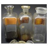 4 Early Pharmaceutical Stoppered Apothecary Jars w/ Labels |