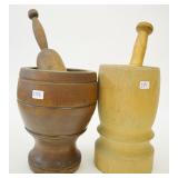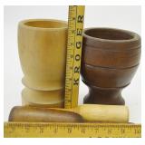 2 Wood Mortars w/ Pestles - Turned and Carved |