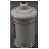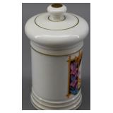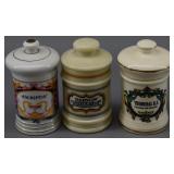 Decorated Porcelain Apothecary Jars - Cerva Flava (lid finial repair) and Lactuca Sativa |