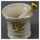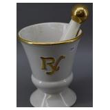 Porcelain Gold Trimmed RX Mortar w/ Pestle |