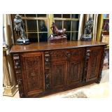 Please look forward to: Orig oil paintings & watercolor art, Antique framed prints, Stunning hand carved Hunt cabinet, and ornate buffet/console cabinet, Ostrich print-leather bar stools, Large contemporary leather sofa sectional, MCM walnut bedroom suite by Founders/Thomasville, Huge book collection, Italian porcelain & art glass, Nice section of wood carved figurines, Bronze & Spelter statues, Fine crystal decanters & candelabras, Primitive needlepoint, Orig WW1 Army recruitment poster, Antique & vintage lamps, Rugs, Large Dictionary/book stand, Antique brass inkwell, Vintage toys including tin type & early Barbie, Nice assortment of Vintage magazines, Vintage designer clothing, Washer & Dryer, Stainless refrigerator, Fine china & dinnerware, Gold flatware, Sterling silver bowls, cups & formals, Hand carved Asian lighted bar, Huge selection of unique side chairs & accent tables, Solid marble pedestal, Vases & urns, Brass decor, Middle Eastern decor & collectibles, Asian decor, Antique books, Record Albums, Upscale formal dining table w/croc print leather high back chairs, Dinette set, Wing back chairs, Clocks, Vintage electronics & cameras, Campaign buttons, Italian capodimonte, Murano glass, Horchows, Bookshelves, Vintage Christmas & seasonal items, Small Appliances, Bedding & Linens, Kitchen-wares, Outdoor furniture, Concrete plant stands, Yard art, Pots & Planters, Vintage console stereo, Hand painted Bavarian porcelain, Lighted Pottery Barn Modular Wall Unit, Misc Dressers & Bedroom Furniture, End of Bed benches, King size Henredon Sleigh Bed, King sized mahogany poster bed, Ornate marble top entry table, Antique hall tree, Drop front Asian secretary, Flatware chest, Office furniture, Huge selection of misc collectibles and much, much more! (Check back Thursday evening for new photographs. We have many more treasures to announce ; < )