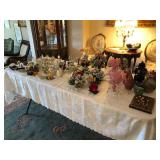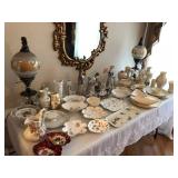 Loaded with beautiful furniture including Bombay style bedroom set, Provincial dining room & bedroom sets, mahogany bedroom set, carved side chairs & tables, lamps, signed oil paintings, Limoges, Lladro & Capodimonte & more collectibles, china, kitware, clothes, shoes, bags & more!! |