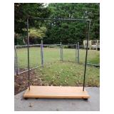 70 Panasonic Surround Sound and BluRay Disk player. Model No. SA-BT228 71 Lot of 17 Looney Tunes character glasses. Bugs, Tweety, Sylvester, Daffy and friends. 72 I Crate 1536 Collapsible Dog crate in excellent condition 3' x 32.5"x 25.5 "T 73 Oligo Hair Color Scale - NIB 74 Collapsible Dog crate in excellent condition 3' x 32.5"x 25.5 "T 75 Gary Patterson, 1974 Thought Factory Golf - "18th HOLE" 20" X 18" Framed 76 Mary Vickers lithograph "Child in Sprinkler" Framed, matted, signed and numbered 65/400. In excellent condition 77 Two Oligo hair color scales 78 TOBI Steamer 79 Cool Retro Lamp in the style of antique Ewer with Vintage Shade 80 Leopard Glass lamp with a linen shade 81 Tiffany Style Stained Glass hanging light. 82 Black floor lamp with a white shade. 83 Two wood swivel bar stools 84 Shelf & Contents. Books, Decor & More. See photos. 85 Two Framed Photographs and One Framed Sketch 1) Large framed photo looks to be a newsroom or similar 1) Numbered Photo 1/2 "Patio Interior colonial en la Havana Vieja, Cuba by Angelo (?) 1) Sketch of young girl bust 86 Hand Carved Mask 87 Three 24" Red Barcode wall lights- in the box 88 Three 24" Blue Barcode wall lights- in the box 89 Lot of Ladies Size 10. Black knee high embellished vinyl boots, Top Moda “Ugg Style” boots and DeBlossom Collection white wedge heels. All new in box. 90