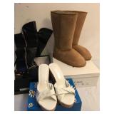 174 Large rattan Basket full of new scarves 175 Large rattan Basket full of new scarves 176 2)pair Wild Diva Oksana-02 black boots - size 8 2) pair De Blossom Fisola-17 white pu - size 8-1/2 177 2)pair Wild Diva Oksana-02 black boots - size 8 2) pair De Blossom Fisola-17 white pu - size 9 178 3) pair De Blossom Fisola-17 white pu - size 10 4) pair De Blossom Fisola-17 white pu - size 11 179