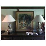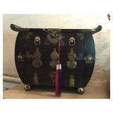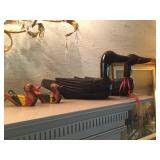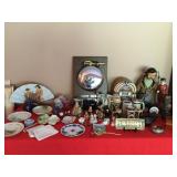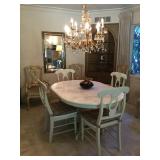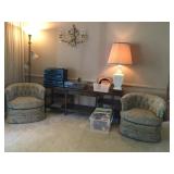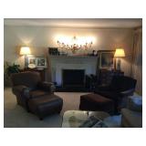 Living /Dining Room: Sofa Old Fire Department Bell Limoges/Wedgwood/Blue Flow/Herend/Hummel Tribal Pieces Soundlogic Jukebox German Beersteins Wood & Glass Coffee Table Inlaid Accent Table Japanese Cloisonne Records Kenwood Speakers/Kenwood Electronics/Quadraflex Turntable Balloon Style Swivel Chairs, Pair Gold Leaf Italian Florentine Wall Sconce Crystal Chandelier Mahogany Antiqueio Curio Versace Asian Lamps, Pair Asian Jewelry Box Duck Decoys Baker Chippendale Style Credenza Desks Pottery Barn Leather Chair & Ottomon Midcentury Modern Fireplace Set W. Forner Art French Style Chairs, Set of 6 Dining Table and Chairs