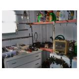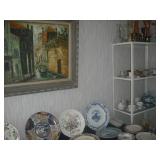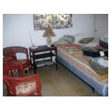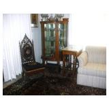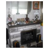 Furniture includes: Loveseat/hide-a-bed 2 freestanding fireplace/mantles Electric recliner Full and twin size beds Walnut gothic side chair, circa 1850s Curio cabinet; shelves, bookcases, knick-knack wall cabinet, wood & glass display cabinet Drop-leaf table’ gate leg table Wicker chairs and plant stand Several wood side chairs with cane seats Large rooms-size area rug Washer and dryer Also Dresden figurines; vintage lustres; cut and pressed glass Large assortment of hand-painted collector plates; cup/saucer collection; Oriental figurines Vintage Pyrex nesting bowls Old paper, large volume of postcards, movie star scrapbooks, Joan Collins cardboard figure, Michael Jackson and other posters Ornately framed art; decorative mirror; lamps Record albums Hand tools, hardware, ladder, garden tools, antique wood clamps Vintage wrought iron wall-mounted hooks and hangars Shark vacuum cleaner; linens, kitchen appliances and small electronics including DVD/VCR Assorted household products and necessities