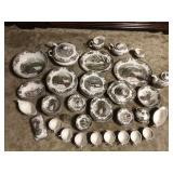 This online auction features FURNITURE: Tall standing tilt mirror; lighted china hutch and dresser; vintage dresser with tilt mirror; bookstand. CHINA: "The Friendly Village" by Johnson Bros service for 10 and much more!
