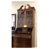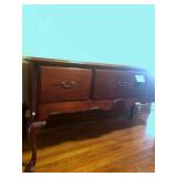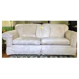 This online auction features FURNITURE: Dining room suite consisting of a West Indian mahogany breakfront china cabinet, dining table, eight chairs and a sideboard. Console tables; a Chippendale style cherry secretary; Rowe Furniture Co. cream-colored overstuffed sofa and much more!