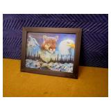 VERY NICE WOLF PICTURE ON MIRROR THAT MAKES HOWLING NOISE - MIRROR IS 17 3/4 X 25 X 2 1/2 - TESTED & WORKS