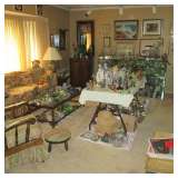 THE PHOTO'S WE DISPLAY ARE "BEFORE" WE SET UP THIS HOME IN OUR USUAL ORGANIZED MANNER. WE WOULD LIKE TO GIVE YOU A PREVIEW OF WHAT'S TO COME~~ DUST FREE GLASS DISPLAY CASES Get ready for the holiday's by purchasing gift for those who would enjoy these collections!! Just A Taste ~~ Frogs Doulton Hummel's Elephants Llardo's Perfume Musician Collection Cups & Saucers Jugs Bells Bosson Heads Pewter Nicole Dolls Many, Many More Collections!! Beader & Crafter tons, Mokuba Ribbon, Beads, Chinese Silk for embroidery , silk screen, canvases, Chinese cords for knotting, silver clay, wool, yarn, +++ Packed!! Books, Plants, Furniture Separates, Linens Afghans & Shelving, ++ ++++ This house is full !! More to Follow!! ++++ |