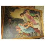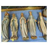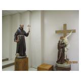 Scotus Hall is filled with items from the grounds and the halls of the Motherhouse at Mt. Alvernia. ANTIQUE AND VINTAGE ART, FURNITURE, CARVINGS, CERAMICS, CHRISTMAS AND DECOR Numerous pieces of fine Liturgical and Decorative Art and Prints including such artists as Johann Grund, Ludwig Mangus Hotter, several works by Angelo di Vincenzo, Edward Shorter, Phyllis Blair and Donal Keohane. Several works after Murillo and after Correggio. Numerous works of art and sculpture by Sister Rosaire Kopczenski. Many Oil on canvas depictions of St Francis , Jesus etc., Spanish or South American school oil on canvas. Many wooden Religious Carvings and crucifixes by the studio of Vincenzo Demetz Figlio Deruta plaque after Della Robbia, modernist tile Stations of the Cross by Slabbinck, numerous other Stations of the Cross in various media, Marble bust of the Madonna Numerous framed prints, religious statues in all sizes from tabletop to larger than life, etc. Furniture Items Include: A highly carved Church/Deacons Bench with leather seats, 4 - 5 stack barrister bookcases, Many oak desks with attached bookshelf (these were from the nursing school, desk chairs, Library tables, Kneelers, Pedestals, Many nice end table/stands, stools, Vintage stacking chairs (100's), Heavy Metal coat racks on wheels (would be great in restaurants, church etc), 3 piece Oak settee and Chair set, occasional tables and vintage arm chairs, metal chairs with attached wood desk, Large wood Teachers Desks Many Antique Floor/Bridge lamps, table lamps Nun doll collection some from 1930's and some "60's. , Vintage Cookie jars Collector plates with religious and other themes Many Baby Jesus Statues in cribs, Christmas Décor and display More items will be added to sale. christmas not displayed yet
