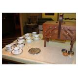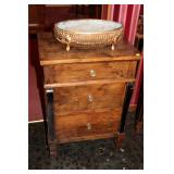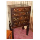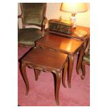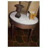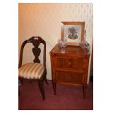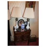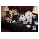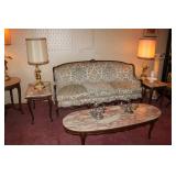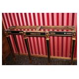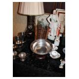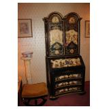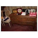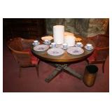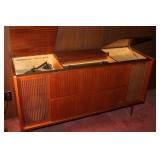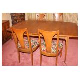 Broyhill "Brasilia" Mid Century Dining Suite, Vintage & Painted Furniture including: Nice Quality Sofa Setee Sets, Marble Top Tables, Figural Lamps, Pedistals, Drop Front Secretary, Gentleman's Cabinet, Antique Persian Hamadan Runner, Chinese Urn, Camel Saddle Stools, Oil Paintings, Watercolors, Antique Embroideries, China, Silver Holloware, Porcelain Figurines, Asian Motif Painted & Carved Silverware Chest, Inlaid Italian Tea Cart, Art Deco China Cabinet, Mirrors, Cane Back Barrel Chairs, Painted Room Divider, Grundig Stereo & Phono Console, Oak Roll Top Desk, Drop Front Desk, 8 French Provincial Dining Chairs, Oval Antique Inlaid Dining Table, Antique Burlwood Dresser, Asian Motif King Size Bedroom Set, Painted Entry Table Base, Console Sewing Machine, Sewing Cabinets, Trunks, New Lighting Fixtures, Antique Carved Corner Chair, Quilted Bedroom Set, Women's Clothing including: Ferragamo Shoes