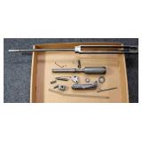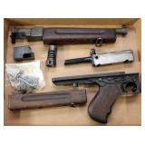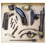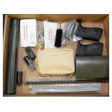 Accessories: N.P. Armes 1843 U.S.N. powder flask Dozens custom knives: Bailey Bradshaw Custom Damascus, DH Russell, Grohmann, Randall, Wayne Smith, Bowen, Rehwappen & others WW2 leather holsters Colt .38 Super 2 tone magazine Wooden presentation firearms chests 100's original hand guns boxes MG 42 wooden scope chest and full case of ammo Large WW2 German Kriegsmarine ship flag marked 150X250 WW2 German Navy Kriegsmarine WKC Luftwaffe First Model sword, Nickel Silver PDL German matching short sword Model 1845 German WW2 SA dagger Eickhorn Marked 1863 Emerson Silver Deh Model 1840, Excellent Model 1840 light artillery sword (2) Model 1860 Enlisted Calvary sword Model 1902 Officer Ridabock U.S. Army RZM SA dagger Pair WW2 German Army Panzer shoulder boards 2nd Model Luftwaffe dagger & other asstd Nazi (3) full boxes Winchester full brass 12 ga. 100's magazines (5) Tac Con 3MR trigger systems Sig Sauer: Romeo 5, Whiskey 3, Romco 3, Romeo 4c & 4A Burris Fastfire 3 Dozen Taser Bolt & Pulse shooting tasers and replacement cartridges Hornady rapid safes 1,000's rounds New factory ammo M1 Garand & BAR parts Assorted gun parts New RCBS reloading set Pelican case Matrix Diversified Magpul furniture sets 1000's rounds of ammunition from .22 caseless - .50 BMG