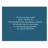 All merchandise is sold "AS IS", "WHERE IS" with NO Warranties, Expressed or Implied. NO refunds, returns, exchanges or merchandise guarantees. ALL SALES ARE FINAL.