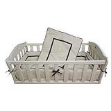 Baby Bedding Hotel Style Mini Crib/Port-a-Crib Bedding Set, Ecru. Our Hotel Style Crib Bedding exudes a supreme sweetness and wonderful warmth, welcoming your precious princess to cuddle in its embrace. The straight lines and sleek design of this beautiful bedding set create a striking effect, while the soft colors lend a inviting warmth. Soft cotton ecru pique fabrics, accented in chocolate trim, make for a most comfortable bedding set. NEW in retail packaging. Please Preview. Retail $28.26 |