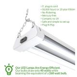 Sunco Lighting 4ft 48 Inch LED Utility Shop Light 40W (260W Equivalent) 5000K Kelvin Daylight. Sunco's LED Shop Light is designed using incomparable material and has a lifetime of 50,000 hours. With our INSTANT ON feature, you never have to worry about flickering. The light is MERCURY FREE and contains NO UV, making it safe for the home and environment. All purchases come with an instructional manual for easy, simple and fast installation. Plug-n-Play, 5’ plug-in cord, no wiring needed. NEW in retail packaging. Please Preview. Retail $25.99 |