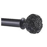 Exclusive Home Peony 1" Curtain Rod and Coordinating Finial Set, Matte Black, Adjustable 66"-120" . The Peony decorative curtain rod and finial set features a timeless, romantic style and floral design with a matte finish iron rod and coordinating cast resin peony, sphere shape finials. This set will provide a visually balanced appearance for your window treatments. The 2.4" diameter x 2.7" long finials will insure that your window curtain panels will remain securely on the rod. The 1" diameter iron adjustable curtain rod is designed to fit a wide range of window widths, and has a sturdy 25 lb. capacity that will support flowing sheers to thermal blackout panels. In opened retail packaging. Please Preview. Retail $22.99 |