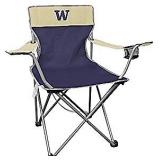 NCAA Kickoff Chair, Washington Huskies. Claim a comfortable spot at outdoor events, tailgating or anywhere you need a seat with this NCAA kickoff chair. The lightweight chair features a full back with your team's logo and a cupholder on the armrest. Designed with your team's colors, it easily folds up into a matching bag with a drawstring closure and a strap for carrying. Chair also has a strap on the back for toting without the bag. Without packaging. Please Preview. Retail $22.18 |