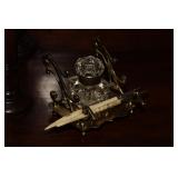 Extraordinarily Packed Scottsdale Estate 50% OFF SATURDAY! The Gentleman that has lived within this Estate is a True Collector and having owned an Antique Store for many Years, truly appreciates Fine Furniture, Quality Furnishings, and High End Artwork. He absolutely Loves Fine Chippendale, Henredon and Hepplewhite Furniture, Mahogany Georgian Accent Pieces, Only the Best Authentic Artwork and Custom Prints, Top of the Line and Rare Wall Clocks, Mantle Clocks & Barometers, Outstanding Bronzes, Vintage Navajo Rugs, Vintage & Antique Inkwells, Beautiful and Unique Cloisonne, Crystal Lalique Compotes and Fine Calligraphy Tools and Leather Topped Writer's Desks. And, oh the Books. Fine Books from Easton Press, Cambridge, Time Life, and Mougham. Let's start with the Beautiful Chippendale and Hipplewhite Furniture shall we. We have an Antique Mahogany Federal Style Wood Hipplewhite Secretary, several Antique Drop Leaf Tables as well as a Beautiful Dining Table with Chairs and Hunt Board Buffett. We have Several Claw & Ball Chippendale Furniture Pieces; including two Lion Head Chairs, Unbelievable Wall Mirrors, Ball & Claw Chairs, Tall Cabinets, Vanity Stools, a Bedroom Suite, a Dresser or Two, a Beautiful Office Desk topped with Leather, and a few Tall Highboy Dressers. We even have an Antique Astragal Fluted Wood Accent Piece; just Beautiful! The Artwork is Amazing and includes originals from the 17th, 18th, 19th and 20th Centuries. There are Pieces by William Mitchell(1864), Edward FD Pritchard, Winston Wetteland, Charles H. Reynolds, Farrington, Von Hassler, John Bohrer, TA Mc Glynn, SY Millitt, Goetzman, Johnny Friedlaender, LL Goldie, Altman, E. Hopkins, Thomas Moran, Scott Kuhnly, John Sandlin, Remington, James Swan, Arthur W. Hall, Alex A. Blum, Helen Faith Twichell, Philip Goodwin, and even James Moran of the McKinny Hall Portrait Gallery of Indians. Bronzes adorn the Home and include Pieces by Remington, The Last of the Mohicans by N. Plaza, with a Paris France Foundry Mark, the Gladiator by N. Keck, and multiple Bronze Bookends, Paperweights and Inkwells. Their are Several Inkwells; each with their own characteristics. Some are Brass, some are Bronze, Many have Crystal Inkwells set in Granite or Stone, and several are set with Eagles and Lions. Very Cool! We have Several Cloisonne Pieces which include two Outstanding Antique Bronzed Cloisonne Lamps, a few Cloisonne Asian Bowls, and a couple of Vases. There is even a Lalique Grape Pedestal Bowl Compote. There are 18C and 14C Fine Pens from Pelican, Vintage Parker, Schaeffer and Tourneau and even a Cross 14K Gold Filled Fountain Pen. The Books are Amazing and include over 75 Hardback Leatherbound Beauties from Easton Press, Leatherbound Hardbacks from Mougham, and many many many More. Please take a long look at the pictures because we have hundreds of Fine Antique, Vintage, Hardback, Paperback and Table Books. And they are Priced to Sell. If you are looking for a Few or Several Accent Items for a New or Existing Home; look no Further. We have many Unique items; including two Antique Arrows Crossed Pedestal Stands, Brass, Amber, Cranberry or Bronzed Table Lamps, an Ivory Bone Elephant Sculpture, a set of Porcelain Fu Dogs, a Sinumbra Lamp with a Tam O'Shanter Globe Shade, Vintage Magnifying Glasses, Cast Iron and Bronze Bookends, an Antique Rand McNally Terrestrial 18" Globe(orig. $1200.00), a Three Tier Wood w/Leather Antique Commode, Imari Bowls & Plates, Vintage Binoculars and Opera Glasses, an Antique Brass Coal Scuttle Box with Claw Feet and Lion Handles, an English George III Bachelor's Chest, Antique Shaving Kits, Multiple Vanity Fair & Remington Lithographs, and many Vintage and Antique Chippendale, Henredon & Hepplewhite Wall Mirrors. Please make time to visit and stay awhile. We really appreciate you and look forward to seeing you very soon. Thanks so much!! :) |