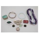 Eclectic Lot of Sterling Jewelry (Jade, Amethyst)