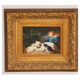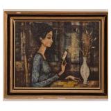 Painting of Girl Playing Cards Signed Enrico Campagnola