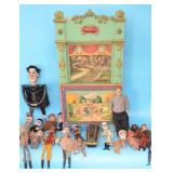 Lg Guignol Puppet Theatre w 11 Early Puppets