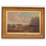 Estate Fresh Albert Bierstadt O/C Painting of Cows