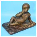 Reclining Baby Bronze Signed Fanchery w Foundry