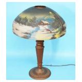 Winter Scene Reverse Painted Glass Shade / Lamp