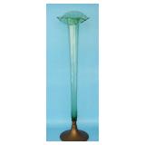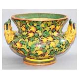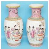 Pr Bronze, Crystal & Pink Pottery Wall Sconces