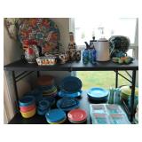 Small Kitchen Appliances, Cups, Dinnerware, Pitchers, Pewter Serving Pieces, Fiesta, Pioneer Woman Stoneware Serving, Trays, Tervis Cups, Pots/Pans, Fitz & Floyd-Navajo China, PACKED KITCHEN.