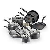 T-fal Hard Anodized Cookware Set, Nonstick Pots and Pans Set, 14 Piece, Thermo-Spot Heat Indicator, Gray **