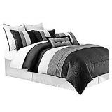Chezmoi Collection 90 x 92-Inch 8-Piece Luxury Stripe Comforter Bed-in-a-Bag Set, Black/White/Grey, Queen **BRAND NEW
