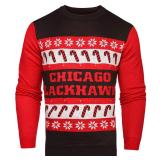 Chicago Blackhawks One Too Many Light Up Sweater - Mens Medium 100% Acrylic Features color-changing lights above and below your team's wordmark! Be the MVP of your next Ugly Sweater Party! 100% Officially Licensed New! In retail package. MSRP: $85.00 <34> |