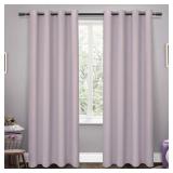Exclusive Home Sateen Twill Woven Blackout Grommet Top Curtain Panel Pair, Lilac, 52x96, 2 Piece 100% Polyester Imported Sateen panels are perfect privacy curtains that block light, reduce noise, and insulates your home from outside heat or cold Set includes: Two (2) curtain panels, each measuring 52"W x 96"L 8 matte silver grommets per panel; inside diameter for curtain rod measures 1-5/8" - panel sewn with 4" heading; 3" bottom hem Recommend ordering 2 to 3 times rod width for proper look and fullness New! In retail package. MSRP: $39.52 |