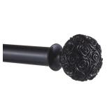 Exclusive Home Peony 1" Curtain Rod and Coordinating Finial Set, Matte Black, Adjustable 66"-120" The Peony matte black curtain rod and finial set features a romantic style and floral design with carved look peony resin sphere shape finials Features two (2) carved resin 2.4" diameter finials 1" iron rod designed for medium to large windows, adjusts from 66" to 120", capable of supporting heavier fabrics up to 25 lbs. Set includes: rod, two (2) finials, three (3) fixed 3.5" depth projection brackets, mounting hardware, and installation instructions In retail package. Minor damage. MSRP: $38.69 |