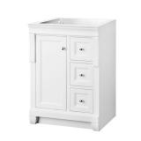 Home Decorators Collection Naples 24 in. W Bath Vanity Cabinet Only in White with Right Hand Drawers. The Foremost Naples Vanity is great for keeping your bathroom organized and clutter-free. Constructed from medium density fiberboard, this vanity can endure consistent exposure to moisture. Featuring a traditional style, it will help to create a warm, inviting design. It has adjustable and concealed hinges for added convenience. Built with a freestanding design, it can be installed against a wall, providing the appearance of a classic piece of stand-alone furniture. • Assembled Dimensions: 24 in. W x 18 in. D x 34 in. H This item is NEW!! In factory box.