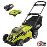 Ryobi 20 in. 40-Volt Brushless Lithium-Ion Cordless Battery Walk Behind Push Lawn Mower - 5.0 Ah Battery/Charger Included. Ryobi redefines cordless lawn mowers with the second generation 20 in. 40-Volt Brushless Mower. Featuring gas-like power, this mower has an intelligent brushless motor with load-sensing technology, allowing it to detect and deliver the power needed to maintain an optimal cutting speed. This means the mower will not get bogged down in overgrown patches of grass and, when additional power is not needed, increases run time by saving the battery. The Ryobi Brushless Mower has a large 20 in. cutting deck, and with its mulching or bagging option, you can get the job done quickly and just the way you like. With its push-button start and 7-position single point height adjustment, you're ready to begin in seconds without having to mess with gas and oil. For easy and compact storage, the telescoping handle has quick-release knobs and the mower is designed to be stored vertically. If you have close neighbors or prefer mowing in the cooler evening hours, this whisper-quiet design with high-intensity LED headlights is the perfect solution. This mower is equipped with a 5.0 Ah 40-Volt Lithium-Ion high capacity battery for extended run time. The included battery and charger are compatible with any Ryobi 40-Volt tools. This item is NEW!!