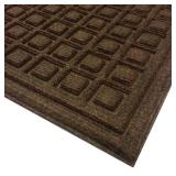 TrafficMASTER Brown 24 in. x 36 in. Synthetic Surface and Recycled Rubber Commercial Door Mat. Help keep your floors clean with this 24 in. x 36 in. Synthetic Surface and Recycled Rubber Commercial Door mat. The mat's durable synthetic surface helps absorb water and resist stains. The attractive molded block surface is designed to scrape dirt and debris off shoes, keeping the dirt outside. This hefty mat stays where you put it and is weather resistant so it can be used outside year round. This item is NEW!! In factory plastic packaging.