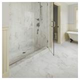 ONE CASE of MARAZZI VitaElegante Bianco 6 in. x 24 in. Porcelain Floor and Wall Tile (14.53 sq. ft. / case). The VitaElegante collection by MARAZZI is a glazed porcelain tile portrayed as a modern interpretation of classic stones. VitaElegante Bianco is a 6 in. x 24 in. porcelain tile that captures the rich color variations, dramatic veining and sensuous movement of calacatta marble. Available in a plank format with minimal pattern repeat, it can be installed on both floors and walls for an elegant style upgrade to any decor. Classic white with gray veining provides an outstanding array of options for creating truly unique designs.