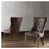 TRIBECCA HOME Atelier Traditional French Burnished Brown Oak Tufted Contemporary Upholstered Dining Chair (Set of 2) .With French-inspired accents, these dining chairs will add sophistication to any dining set . Appears to be new in retail packaging. Please attend the Preview to see the item for yourself. Retail $ 369.01
