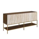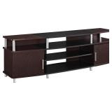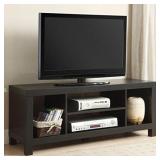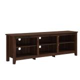 70" Wood Media TV Stand Storage Console - Dark Walnut.Display your TV in style with this wood media stand. Crafted from high-grade MDF with a durable laminate finish for a rich, textured surface, this storage console features three adjustable shelves for anything from your electronics to your home décor. With a cord management port at the back of each shelving space, Appears to be new in retail packaging. Please attend the Preview to see the item for yourself. Retail $ 206.55