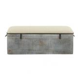 Decmode Farmhouse Horse Watering Trough-Inspired Silver Metal Storage Bench w/ Beige Cotton Seat.50" Farmhouse rustic iron and fabric rectangular storage bench, hammered and distressed finish gray iron with brown rust finish highlights.In Previously Opened Factory Carton Retail $199.99