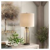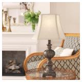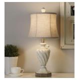 German 24'' Table Lamp, COLOR IS ANTIQUE WHITE.This table lamp is topped with a beige softback fabric shade, which is lined on both sides with the same fabric. Appears to be new in retail packaging. Please attend the Preview to see the item for yourself. Retail $ 72.99
