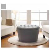 Better Homes and Gardens Round Tufted Storage Ottoman with Nailheads, COLOR IS GRAY.Add storage, style and extra seating in one with the Better Homes and Gardens Round Tufted Storage Ottoman with Nailheads. Appears to be new in retail packaging. Please attend the Preview to see the item for yourself. Retail $110.00